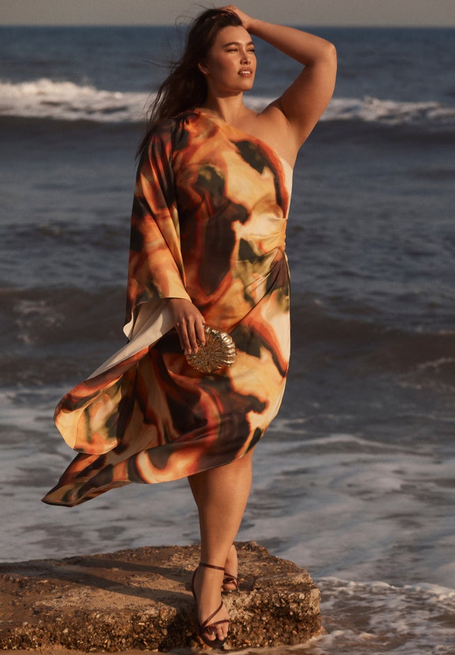 Asymmetrical One-Sleeve Cape Dress