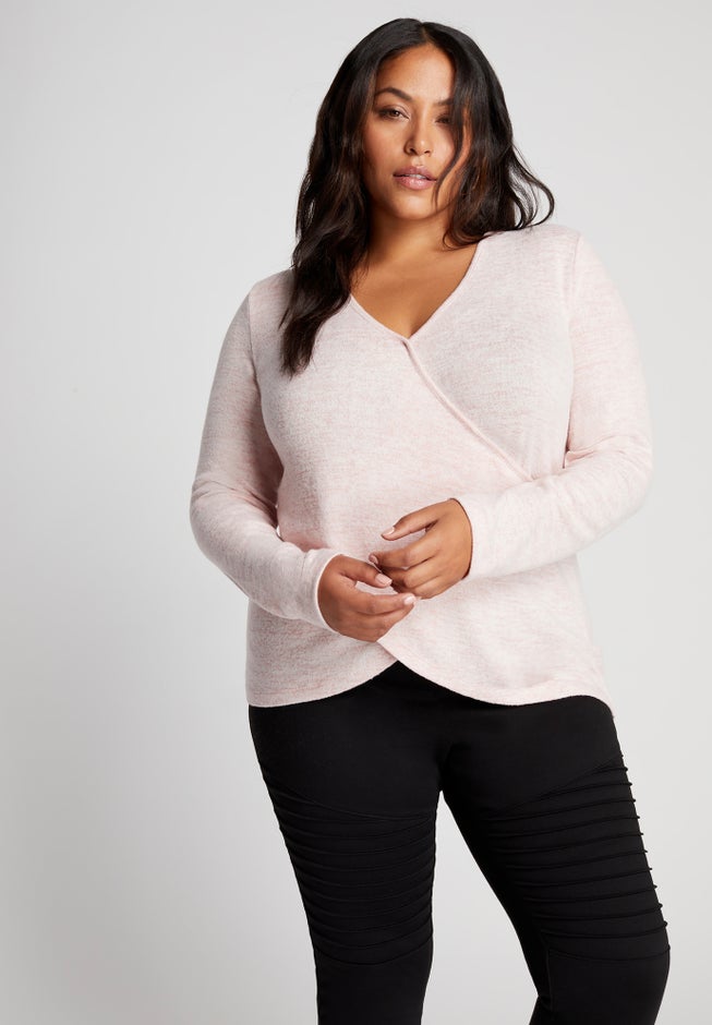Item Number: 1073491This stylish sweatshirt gets a bit of an edge with a crossed front detail. It's made from signature Hacchi knit fabric, which gives it a super soft feel that doesn't lose its shape.